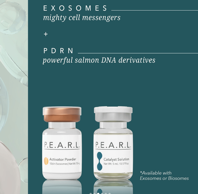 The first of its kind, P.E.A.R.L. Advanced Cell Signaling System combines Exosomes (or Biosomes) and PDRN in a singular, in-office aesthetic treatment, synergizing and amplifying the positive effects of both for more radiant, restored skin.